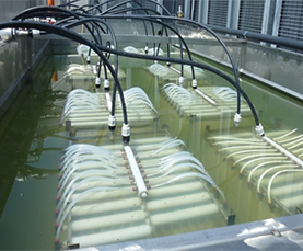 The entire biomass is confined within the system, providing perfect control of the residence time for the microorganism in the reactor (sludge age) and the disinfection of the effluent.